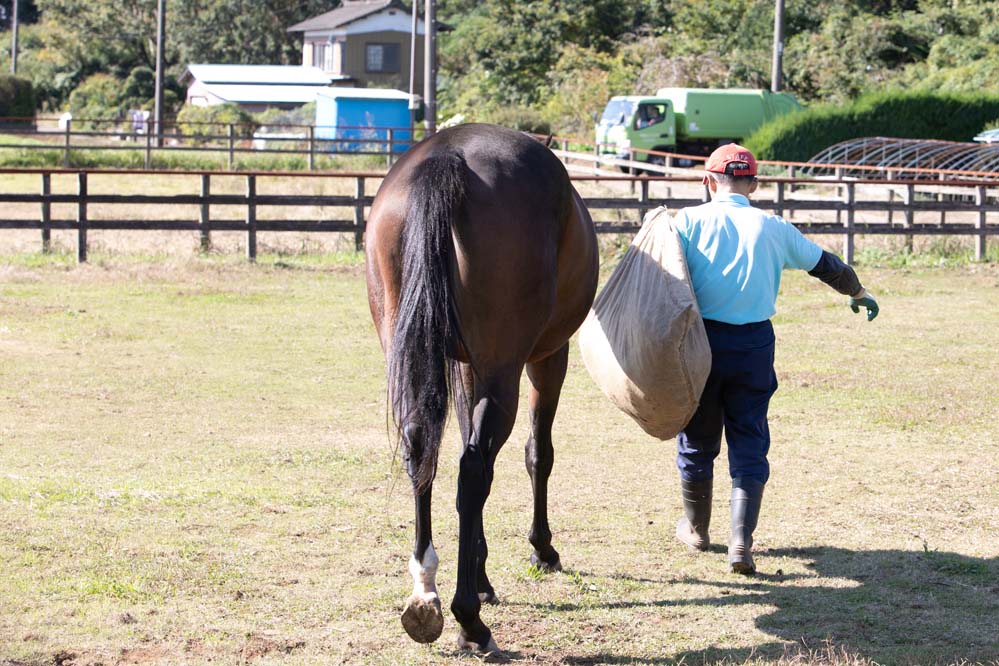 当牧場は、いずれ競走馬になる子馬に強い資質を授けるために、毎年北海道の牧場まで種付けに行っております。種付けの雄馬は厳選しており、現役時代に活躍していたサラブレッドとの交配をし子馬を生みます。生まれた子馬には一人前の競走馬になるための訓練を施します。1歳を迎え、「馬主」や「育成牧場」に引き取られていくまでの間に「ヒトとコミュニケーションが取れる」、「触られても怖がらない」といった基礎ができるように愛情をもって接しております。